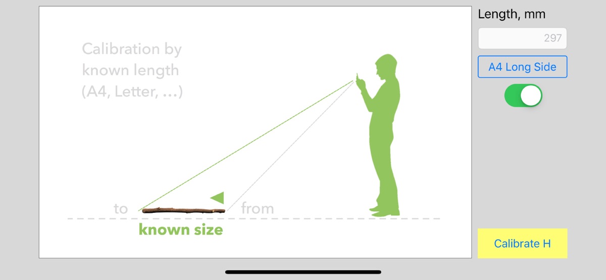 — Калибровка: Возможность калибровки по известным объектам. Вы можете откалибровать высоту по известной длине вокруг — лист бумаги, ширина дороги, известная высота человека или забора.
