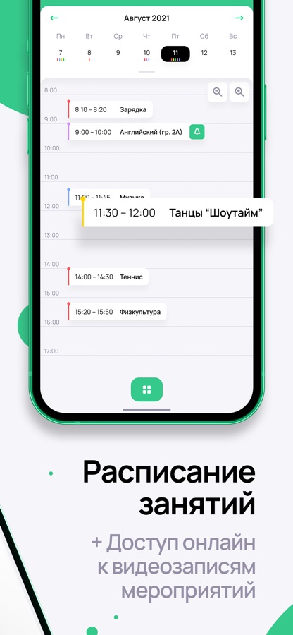— Посещаемость ребенка с возможностью отпросить.