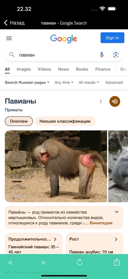 Нажав на любое слово, вы можете найти в интернете его значение, чтобы убедится, что слово соответствует решаемому вопросу.