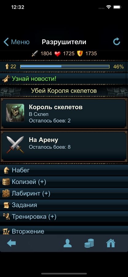 Массовые бои игроков проводятся в Колизее. На несколько часов персонажа можно отправить в Набег в одноименном разделе.