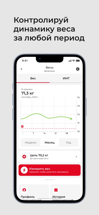 Сохранять параметры взвешиваний на умных напольных весах и отслеживать свой прогресс в удобных графиках