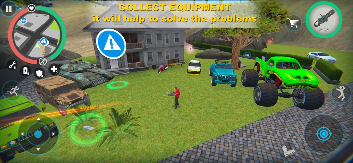 В игре существует большое количество различных автомобилей. Обычные городские авто, спортивные автомобили, внедорожники, уникальные тюнингованные авто, SCI-FI автомобиль. В магазине ты найдешь мощные мотоциклы, они позволят тебе легко уходить от преследования. Мощный и тяжеловооруженный танк ждет тебя, танк является самым эффективным средством в игре, с ним тебя никто не остановит. Боевой вертолет позволит тебе атаковать любые цели, скрытное перемещение и внезапные атаки — это малая часть того как можно использовать вертолет.