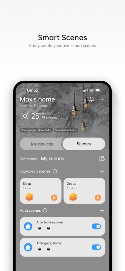 Scenes Interaction: You can set the automatic devices control scenes based on your own habits to make your life more comfortable.