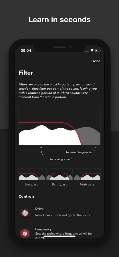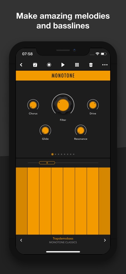 • Play melodies and basslines with the smart keyboard that helps you always stay in key and never hit the wrong note