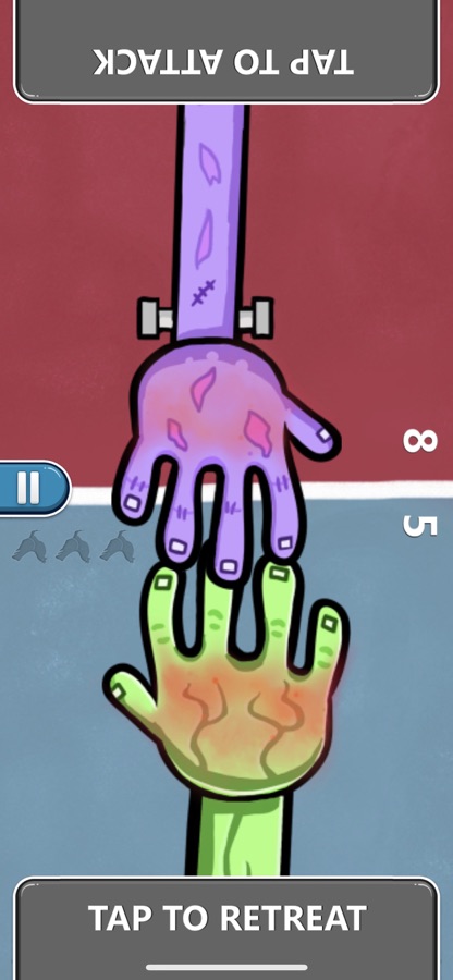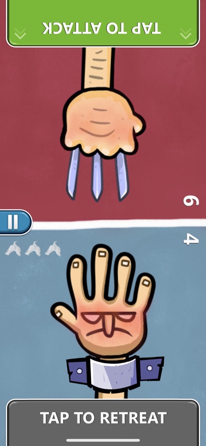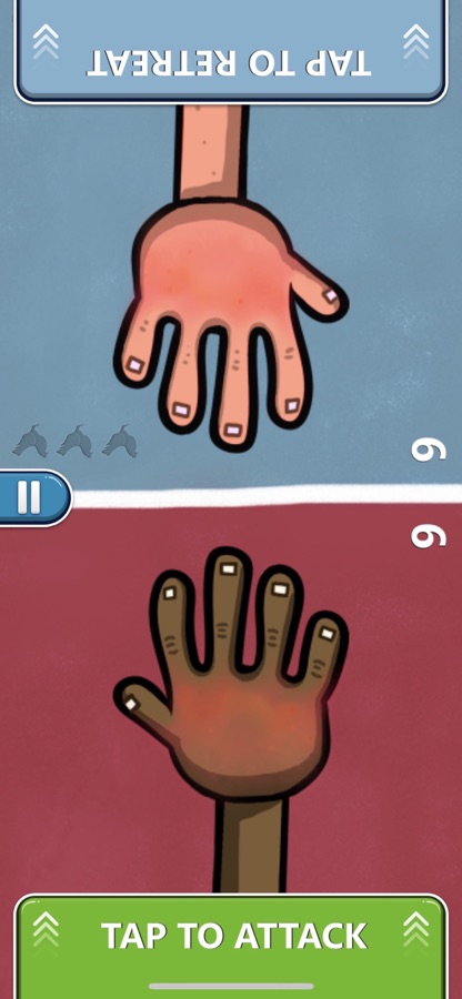 ▸ Атакующий хлопает, нажав один раз на экран, а защитник, нажав в нужное время, отступает