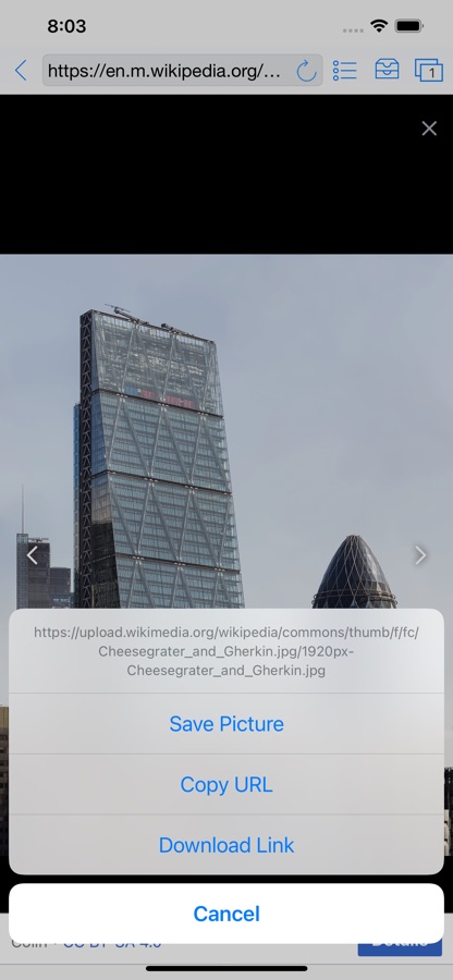 — Share URL’s via Twitter, Mail, Google+