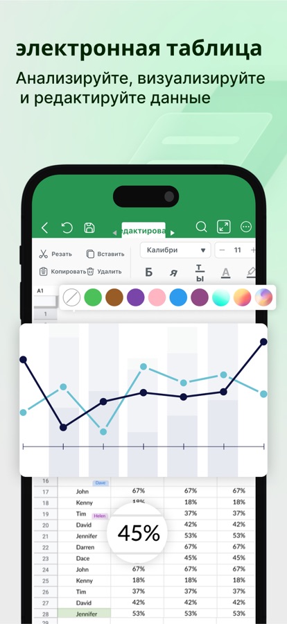 Полное управление электронными таблицами: Легко создавайте и редактируйте файлы XLS и XLSX с помощью интуитивно понятных инструментов работы с таблицами. Организуйте данные, выполняйте вычисления и визуализируйте информацию с помощью встроенных диаграмм, чтобы быть в курсе своих задач.