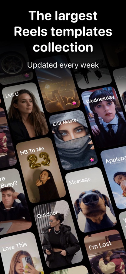 Наше приложение предлагает огромную коллекцию шаблонов, связанных с самыми популярными аудиотреками на Instagram, что увеличивает ваши шансы стать вирусным. С таким множеством вариантов вы никогда не останетесь без идей для вашего следующего ролика.