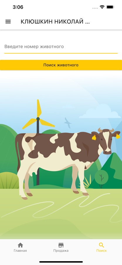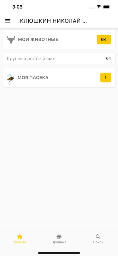 Приложение для главы личного подсобного хозяйства (ЛПХ). Отображается список зарегистрированных государственной ветеринарной службой животных и пчелосемей. Есть возможность найти владельца животного по номеру бирки.