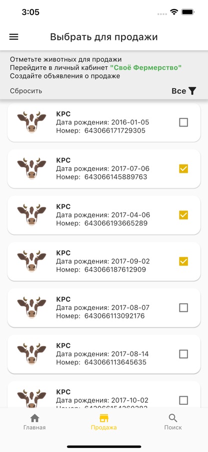 Предусмотрено формирование списков животных на продажу через порталы «Свое фермерство» и «Все Звери».