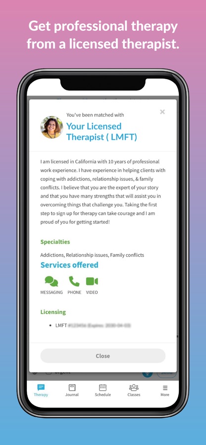 • Unlimited private communication with your therapist