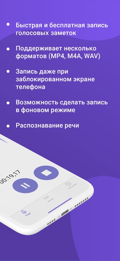 Чтобы начать запись, достаточно нажать на кнопку записи на стартовом экране приложения. Как только начнется запись, на экране появятся кнопки “Пауза” и “Стоп”.