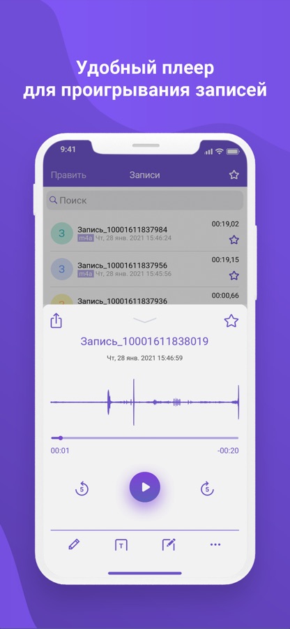 — возможность поделиться записью в сторонних приложениях (iMessage, Twitter, Viber, WhatsApp, VK, Telegram, Facebook, и т. д.)