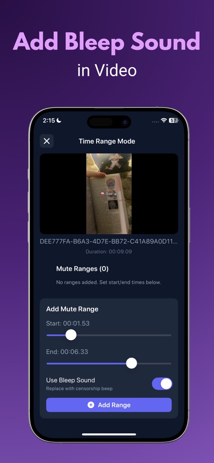 — Mute specific time ranges and add bleep sounds for censorship. Ideal for removing unwanted language or sounds while keeping the rest of your video’s audio intact.