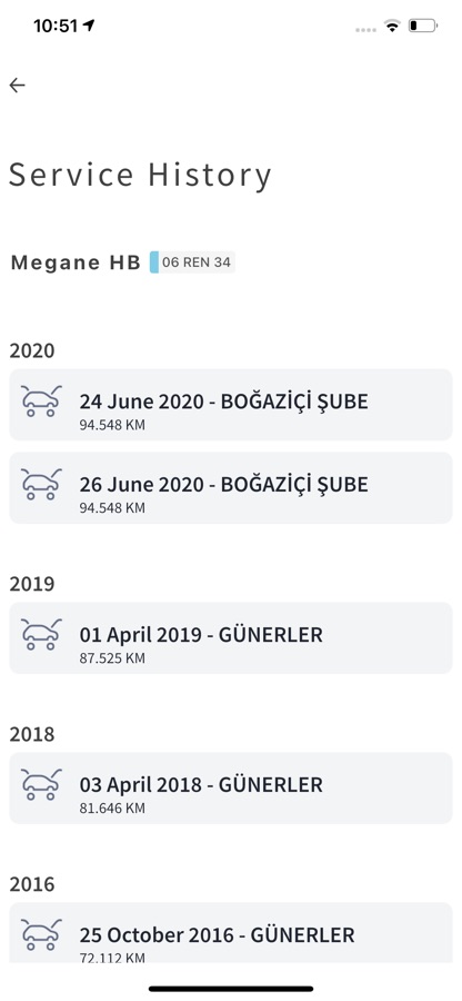 Aracınızın servis tarihçesini takip edilebilirsiniz.
