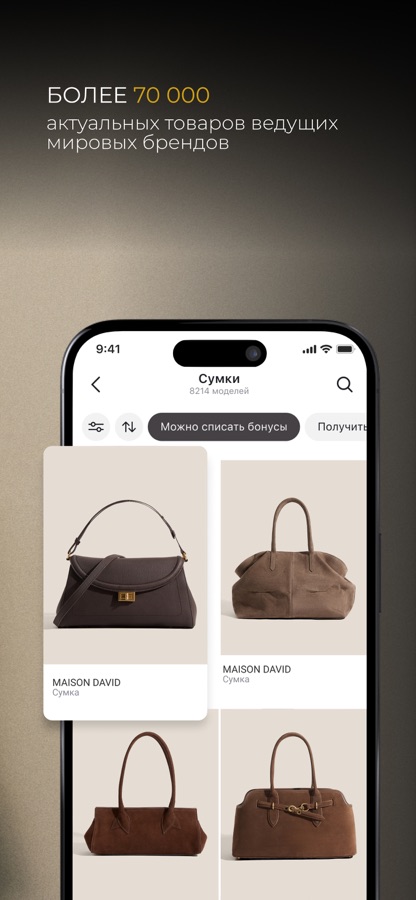 Более 70 000 товаров, удобный поиск, быстрая доставка, гибкая система оплаты и выгодная программа лояльности Privilège. Всемирно известные и эксклюзивные бренды, в числе которых Maison David, Tendance, Lumique, MM6 Maison Margiela, Casadei, Officine Creative, Diesel, Karl Lagerfeld, Bronx, Loriblu, Giovanni Fabiani, Camper, ASH, Halmanera, Ernesto Dolani, Versace Jeans Couture, Love Moschino и другие.