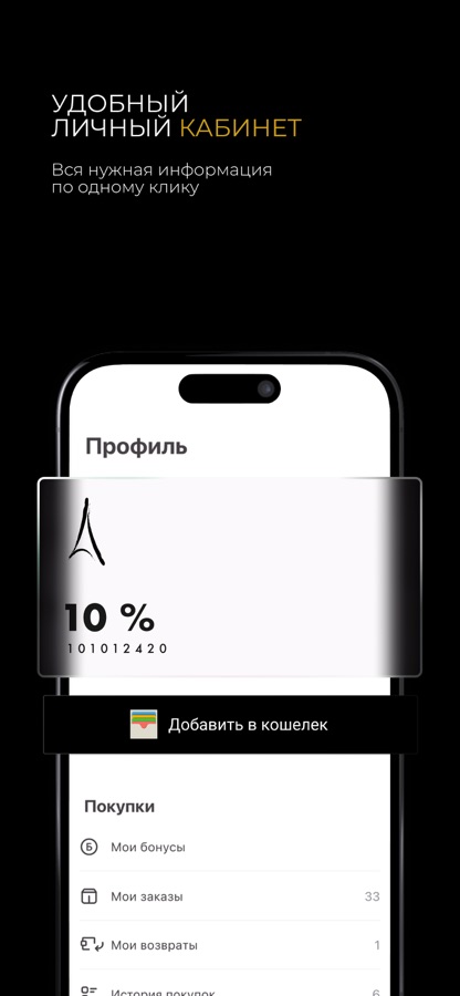 Вся информация о ваших покупках, состоянии бонусного счета, избранных товарах, возможность отслеживания изменения цен для выбранных моделей и оповещения о новых поступлениях и выгодных акциях.