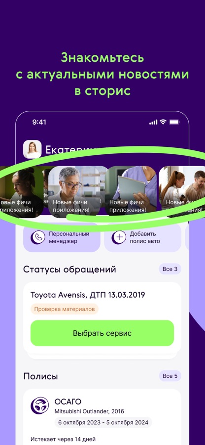 • смотрите информацию по полисам;