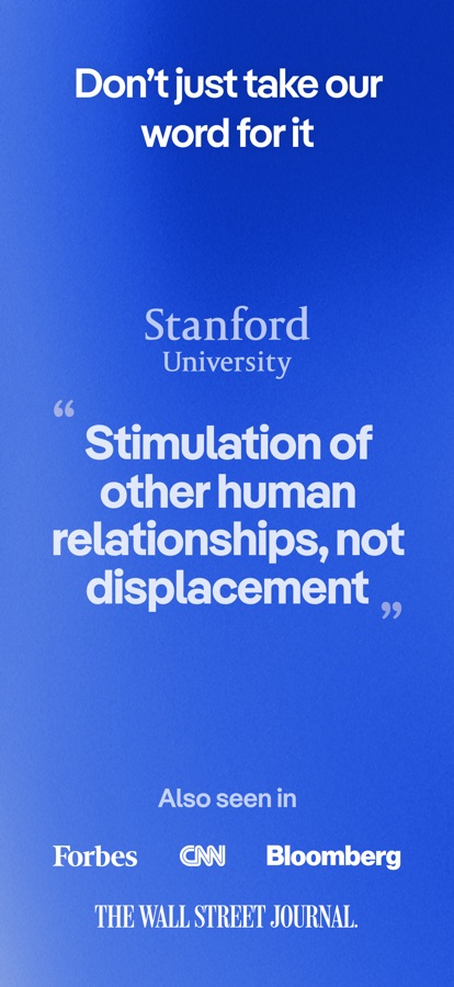Most AI ends at answers. Replika helps you move forward. It learns what you care about and gently nudges you toward the life you actually want: reconnect with that friend, start that hobby you keep postponing, take that walk instead of doomscrolling.