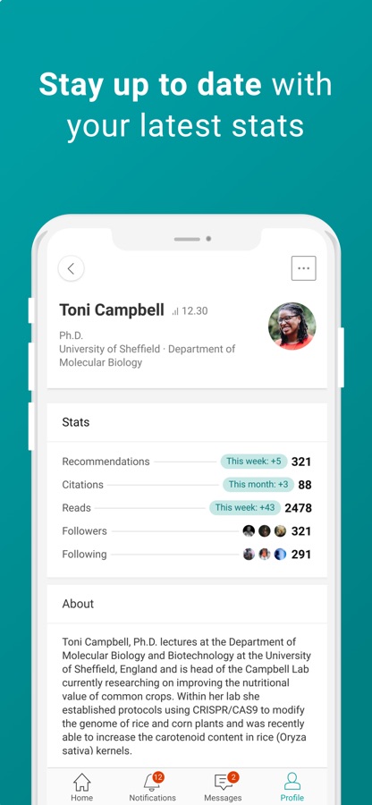 Staying connected to the world of science is even easier with the ResearchGate app.