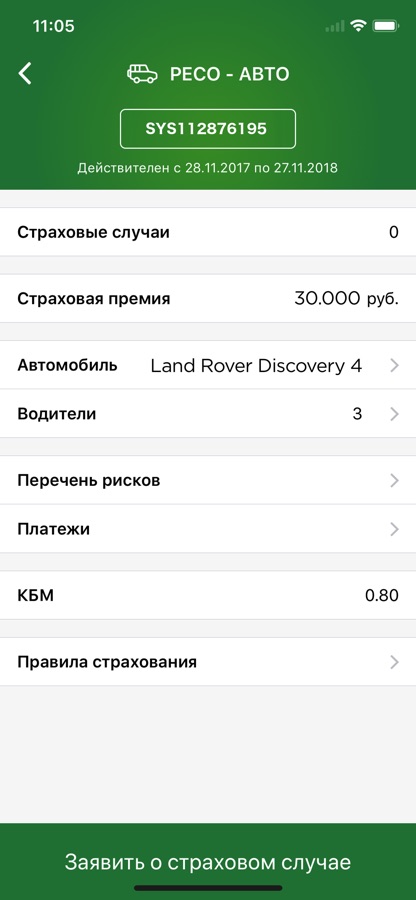 • просмотреть список действующих полисов и сроки их действия