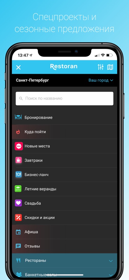 Поиск и бронирование ресторанов среди тысяч заведений Москвы и Санкт-Петербурга.
