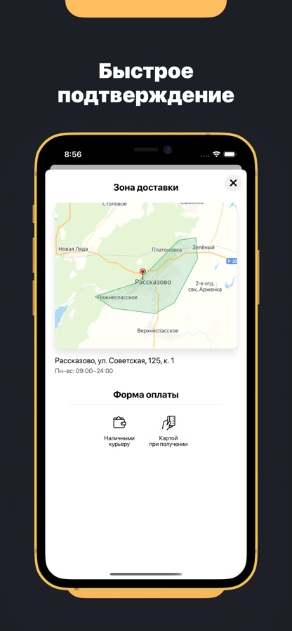 — Быстрый заказ с мгновенным подтверждением через приложение.