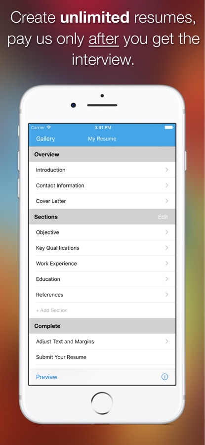 There are many resume apps out there. Resume Builder is different. Download it for free and use it unrestricted. Pay us only when you get the interview.