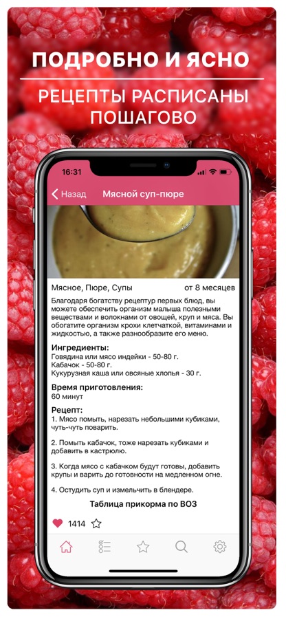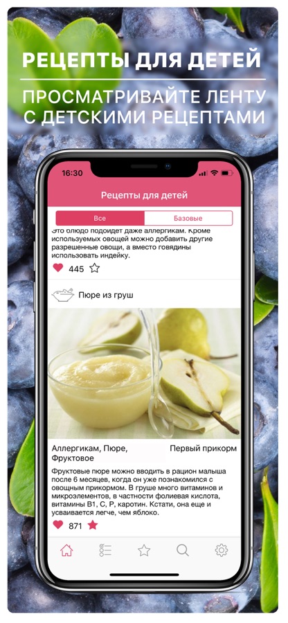 Теперь не нужно перерывать весь интернет в поисках что бы приготовить своему малышу: просто запустите это приложение, выберите возраст ребенка, желаемый тип блюда и начните готовку! Есть даже отдельный раздел с блюдами для прикорма самых юных малышек и аллергиков!