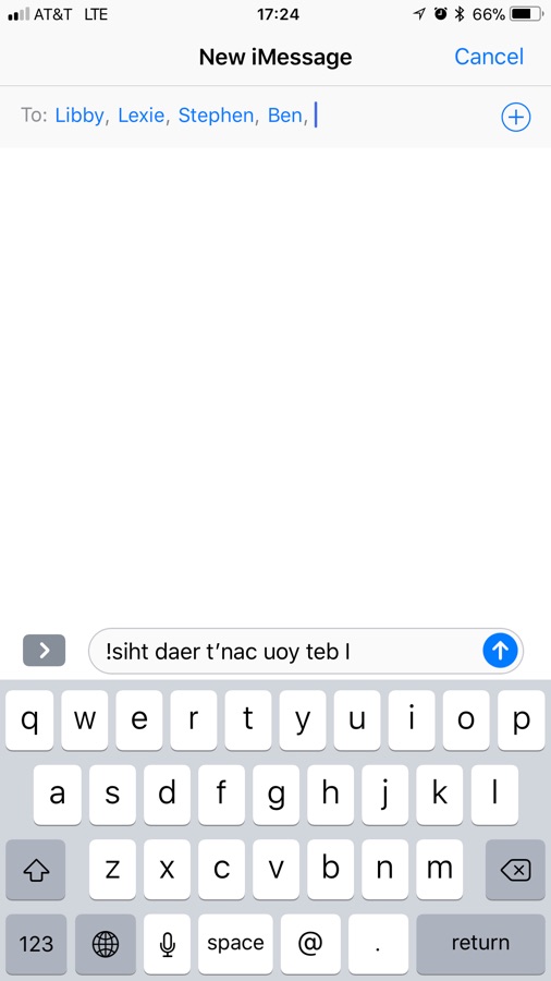 Have you ever tried sending texts backwards? Maybe you want to mess with a friend or keep your message secret. Well it can be a hassle to think about typing out a long sentence in reverse. Now there is an app for that!