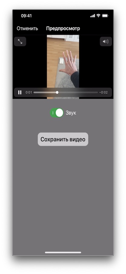 Используйте старое видео из фотоархива или запишите новое. Приложение создаст из вашего оригинала обратное видео и сохранит его как новое.