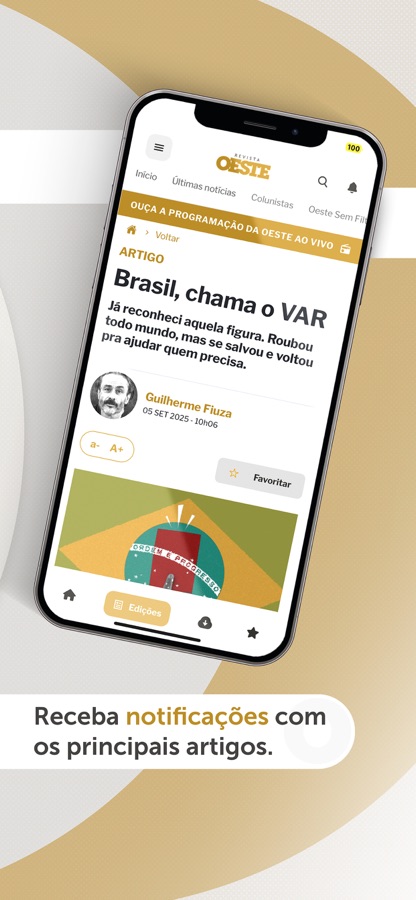 Em resumo, o aplicativo da Revista Oeste é uma solução prática e moderna para quem quer ter acesso a um jornalismo de qualidade em qualquer lugar e a qualquer hora. Baixe agora e tenha a Revista Oeste sempre ao alcance das mãos!