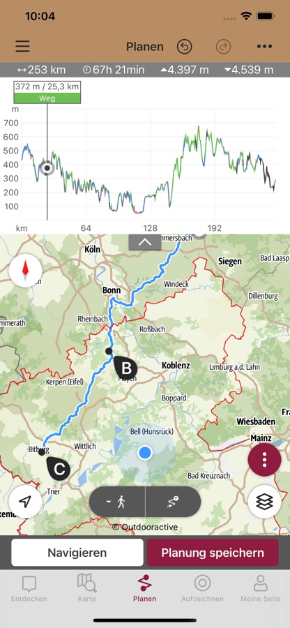 Alle Touren sowie die Karte kannst du bequem im WLAN-Bereich offline speichern und auch ohne Mobilfunknetz im Gelände abrufen; du kannst auch deine eigene Tour aufzeichnen und später mit Freunden und Familie teilen!