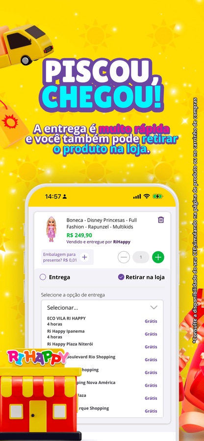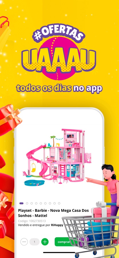 Comprar na Ri Happy e encher a casa de diversão nunca foi tão fácil! Com o nosso Super App você pode navegar por nossa loja virtual e comprar seus produtos e presentes diretamente dentro do aplicativo. Depois é só escolher como quer receber e a brincadeira já vai estar pronta para começar!