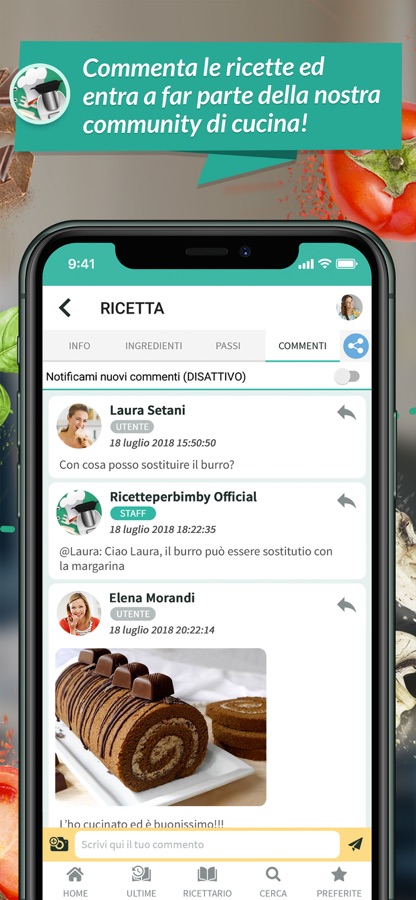 Per ogni ricetta è possibile interagire con gli utenti della community commentando e condividendo esperienze e foto tramite account Facebook o Google.