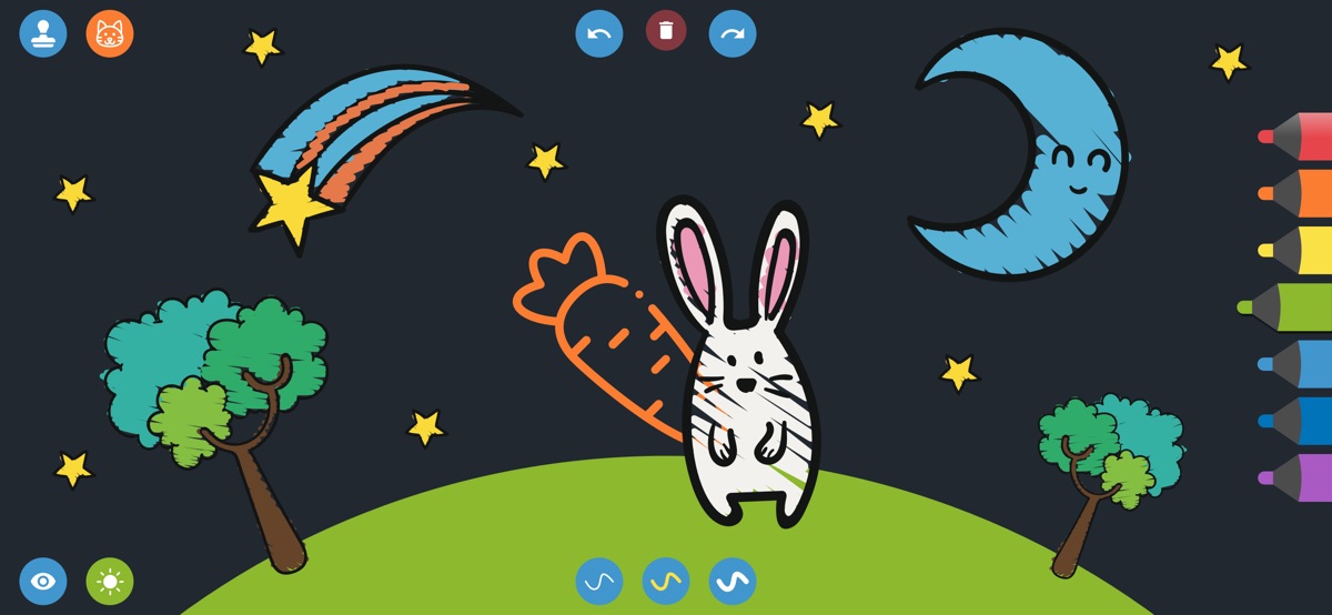 Ребенок может создавать собственные рисунки или выбирать из готовых шаблонов с изображениями животных, машин, цветов, игрушек, динозавров и других забавных тем. Разнообразные кисти, маркеры, штампы и наклейки помогают сделать каждый рисунок уникальным и ярким. И всё это без бумаги, без красок, без уборки. Ребенок может легко стереть, переделать и экспериментировать с рисунками сколько угодно.