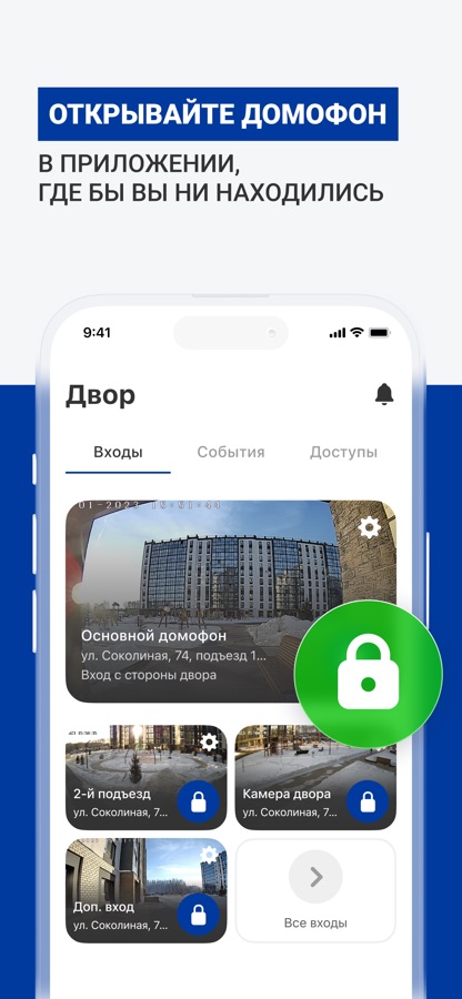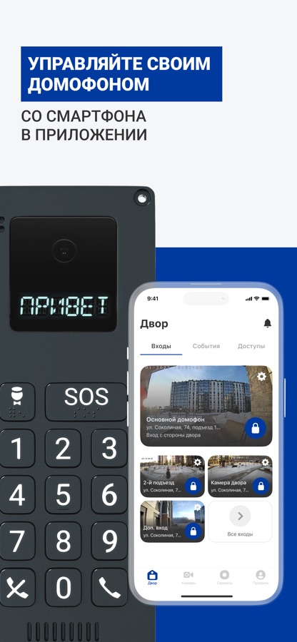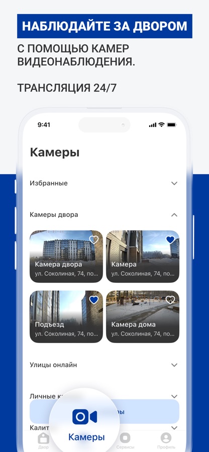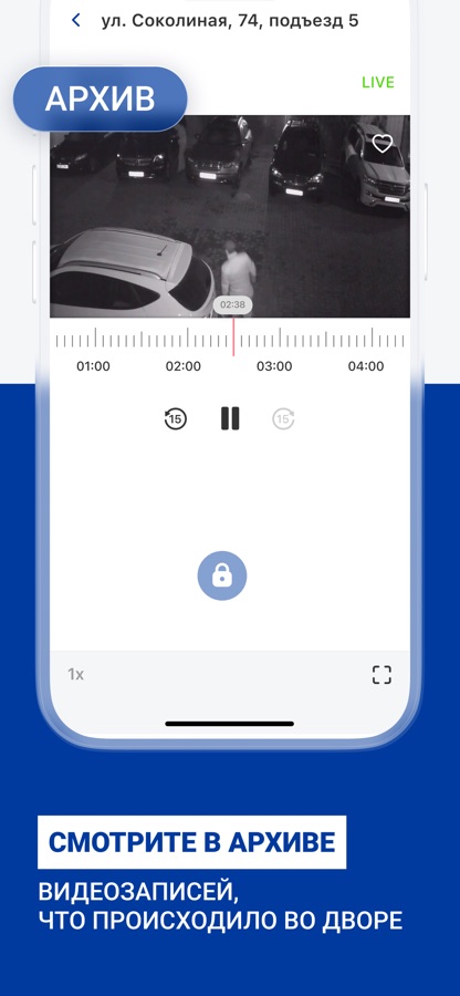 — просмотр камер видеонаблюдения во дворе, доступ к архиву;
