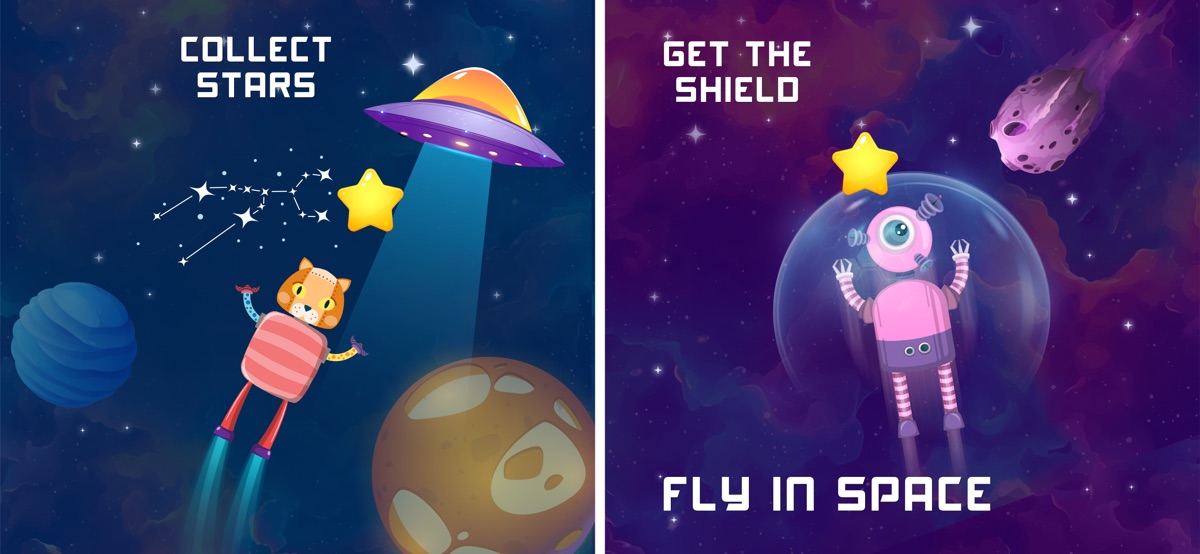 Или вы можете выбрать Солнечной системы, но будьте осторожны с препятствиями в виде космических кораблей, кометы, астронавт, спутник и т.д. двигаться вверх и вниз, вправо или влево и поймать звезды. И если вы нажмете любую из препятствий, то ваши части робота может привести к поломке. Так что обратите внимание на щит и получить его, чтобы иметь защитный слой вокруг и ничто не может попасть в робота тогда.