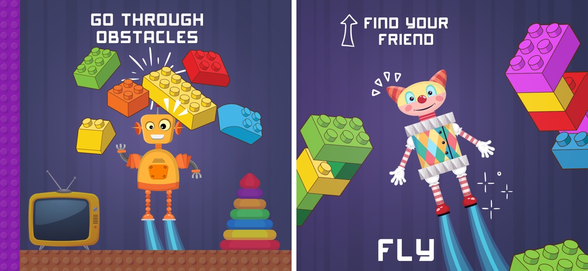 Затем гонка бота в комнате ребенка, найти свой путь через строительные блоки, машинки, прыгающие шарики, музыкальные инструменты и т.д. летать, прыгать, прыгать, направления изменений, ускорить — убедитесь, что ваш робот построен идеально. На вашем пути собирать звезды 3 и найти красную дверь, чтобы встретиться с вашим другом роботом.