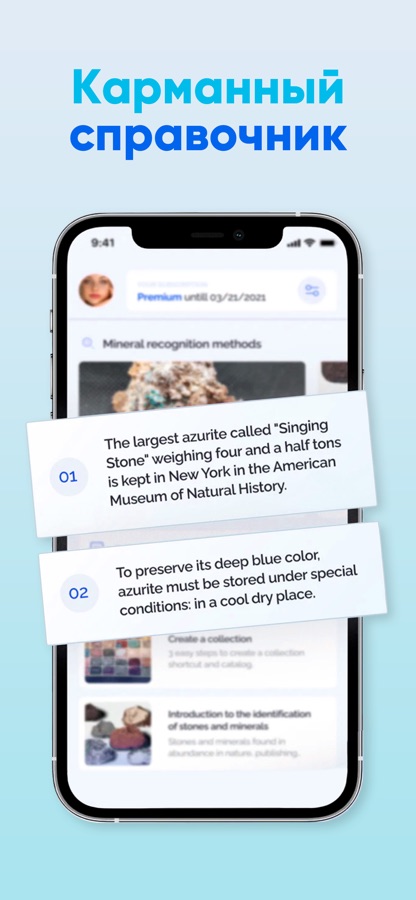 — Описание подписки: Премиум-подписка на 1 год включает в себя неограниченное распознавание камней, получение большого количества информации о камнях, отсутствие рекламы и водяных знаков.