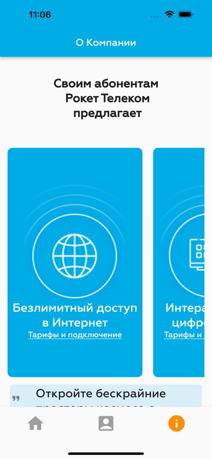 Мобильный личный кабинет для абонентов-физических лиц ООО «Рокет Телеком»: