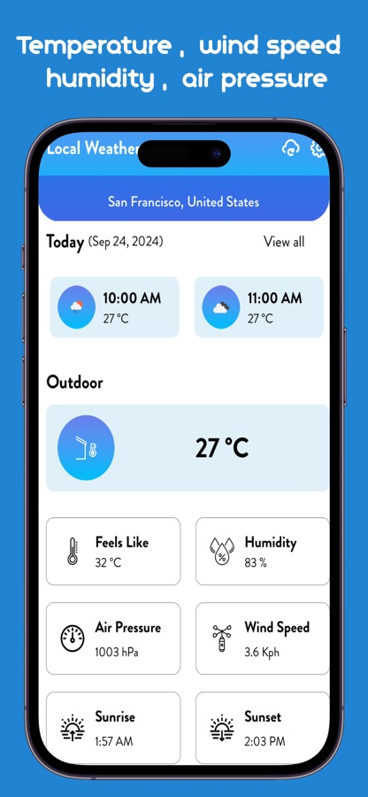 — Air Pressure: Monitor atmospheric pressure for complete weather insights.