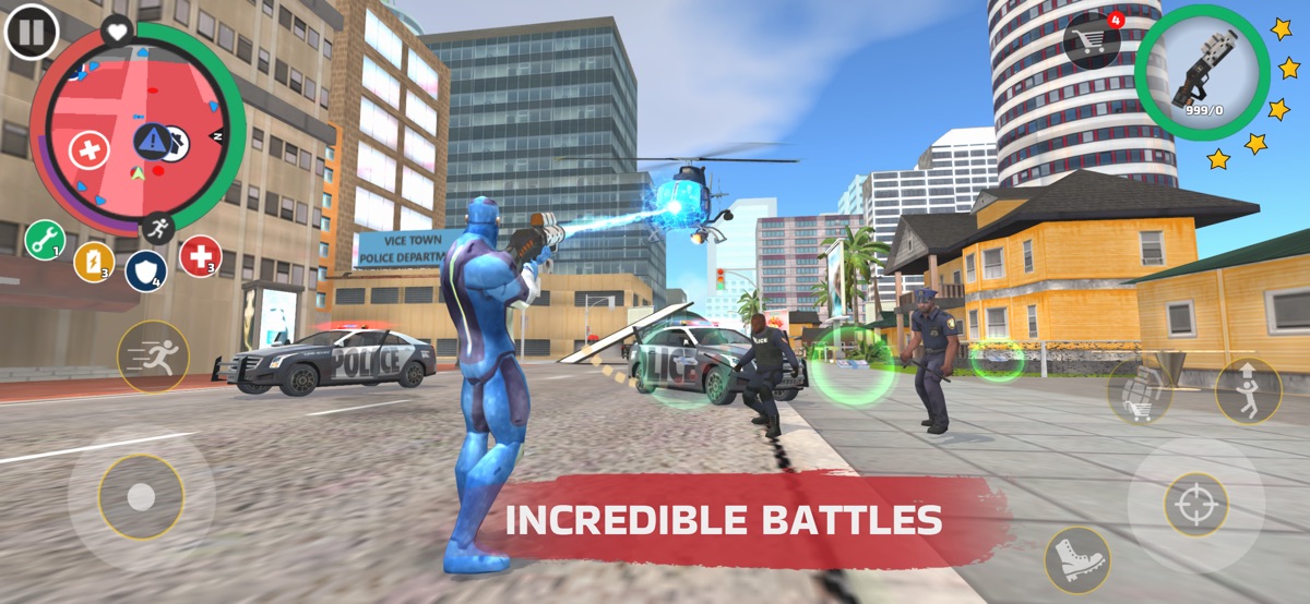 Спасите Вайс-Таун — станьте настоящим героем! Окунитесь в город, наполненный опасностями, приключениями и открытиями. Пролетайте между небоскрёбами или сражайтесь с бандитами на улицах — Rope Hero: Vice Town предлагает захватывающее приключение в открытом мире, полное экшена. Скачивайте прямо сейчас и начните свое геройское приключение!