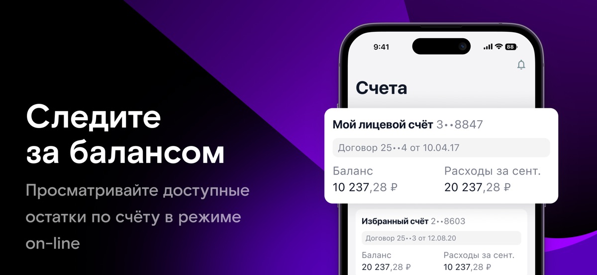 • Количество и статус подключенных услуг