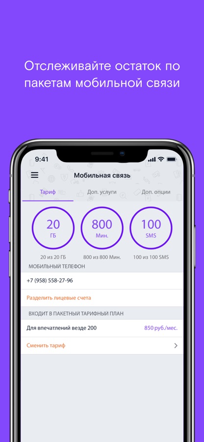— отслеживать остаток по пакетам мобильной связи, менять минуты на гигабайты
