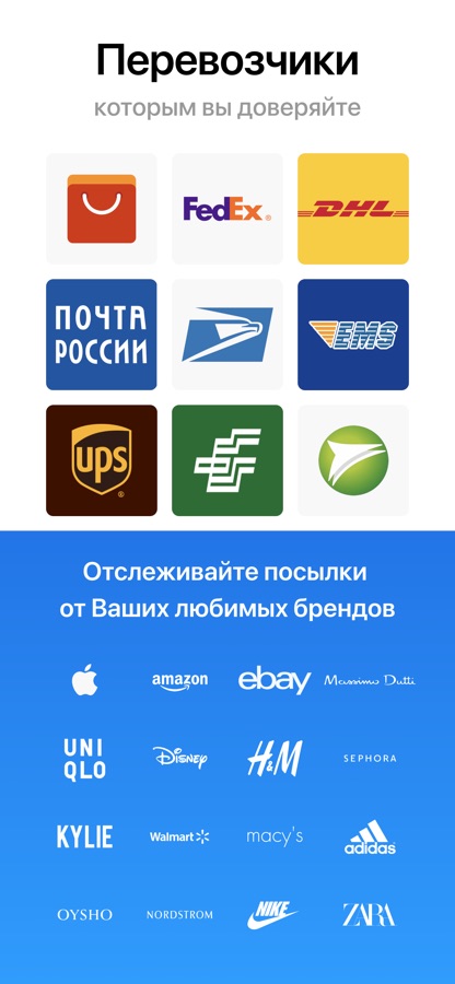 Отслеживайте транспортные и курьерские компании, такие как: UPS, СДЕК, P2P-TrakPak, wnDirect, Yanwen, 4PX, DHL Global Mail, S.F. Express, CDEK, DHL Express, DHL Paket, Winit, NovaPoshta, Sky56, YunExpress, PitneyBowes, 007ex, СПСР, Chukou1, Pony Express, UBI, Parcelforce, FedEx, TNT, Flyt Express, SFC, IML (AMLRU), Yodel, DPD Германия, DPD UK, DPD Россия, Wish Post, GLS, Hermes, KWT56, Landmark, SkyNet, 139 Express, CNE Express, EMPS, ETS, UPS i-parcel, Boxberry, Aerotrans, ТК Энергия, ТК Деловые Линии, Главдоставка, ПЭК, ТК КИТ, РАТЭК, Байкал Сервис, J-NET, DPEX, Aramex, ABX, Ruston, eShopWorld, Yodel Direct, Parcel2Go, EWS, JCEX, Metapack, ЖэлДорЭкспедиция.