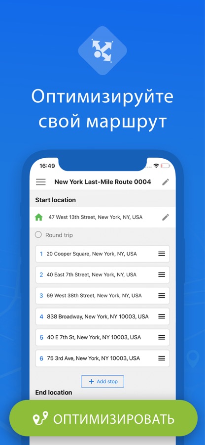 ИСПОЛЬЗУЙТЕ ПРИЛОЖЕНИЕ ROUTE PLANNER ДЛЯ ПЛАНИРОВАНИЯ ПРАКТИЧЕСКИ НЕОГРАНИЧЕННЫХ МАРШРУТОВ И НЕОГРАНИЧЕННЫХ АДРЕСОВ НА МАРШРУТ.