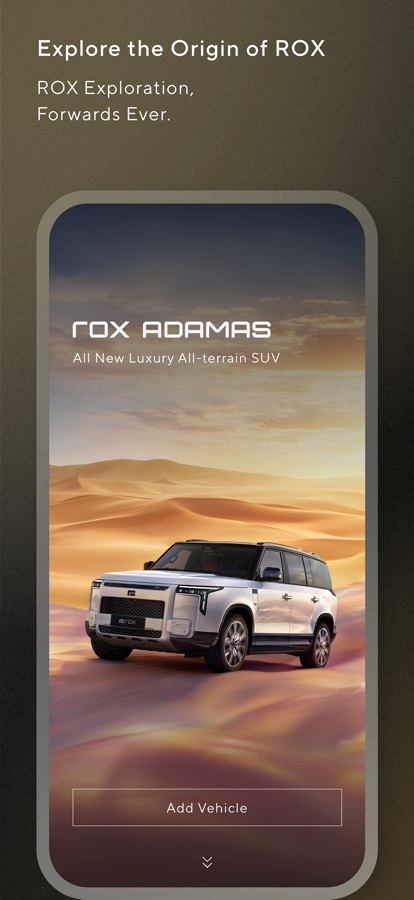 Welcome to experience the ROX App. You can use your mobile phone as a Bluetooth key, which allows you to unlock and lock your vehicle, start your vehicle, and perform other car control functions. You can gain a deeper understanding of ROX and ROX Model Introduction. You can enter ROX LIFE and view the customized accessories. Experience the infinite possibilities that the ROX brings to you.