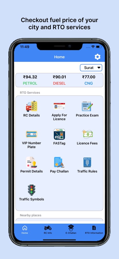 Live & Travel with RTO app and find all the solutions of vehicle in one application like vehicle information, live price, E-challan, Rto services, Preparation for RTO exam, Insurance and more.