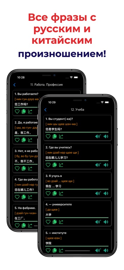 • Разговорник — отличный помощник для тех, кто знает русский/китайский, и незаменимый спутник для всех, кто только приступает к изучению языка. Разговорник полностью работает без подключения интернета.